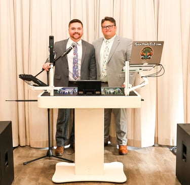 At Twin Oaks Entertainment, also known as Dygos Brothers DJs, we specialize in creating unforgettable moments through music. Whether it's a wedding, birthday party, anniversary, corporate event, or school dance, we bring a perfect blend of experience, energy, and personalized service to every occasion. Our goal is simple: to keep your guests dancing and ensure every moment of your event is memorable. Our passion is crafting the perfect soundtrack that keeps the dancefloor packed and your guests smiling all night long.